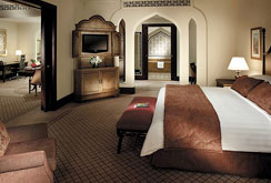 Diese luxuriöse 8,5 Hektar große Resortanlage liegt zwischen den Brücken Al Maqta und Mussafah, die Abu Dhabi mit dem Festland verbinden. Das Hotel hat einem wunderschönen Privatstrand mit Gartenanlage. Die 214 luxuriös eingerichteten Gästezimmer und Suiten verfügen über Balkon und Meerblick. Das Hotelgebäude ist eine gelungene Kombination aus orientalischem Flair und modernem Design. Spektakulär ist die 700 m lange Wasserstraße, auf der man in „Abras" (arabische Gondeln) die Anlage durchqueren kann. Das Resort verwöhnt seine Gäste mit 4 hervorragenden Restaurants (chinesische, französische, vietnamesische und internationale Küche). Es gibt einen täglichen kostenfreien Shuttle-Bus nach Abu Dhabi. Ins Zentrum von Abu Dhabi sind es ca. 20 Fahrminuten.